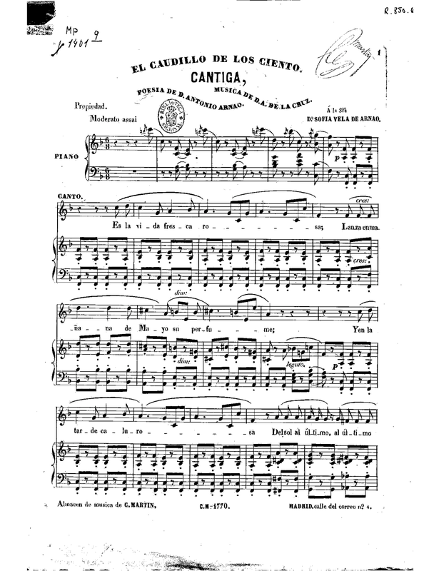 | Dedication | A la Sra. Dª. Sofía Vela de Arnao (Cántiga) ; A *** (Melodía) |