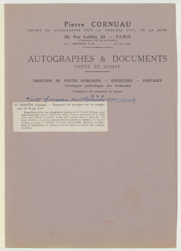 | First Performance. | 1916-01-22 in Paris, Residence of Princesse de Polignac.