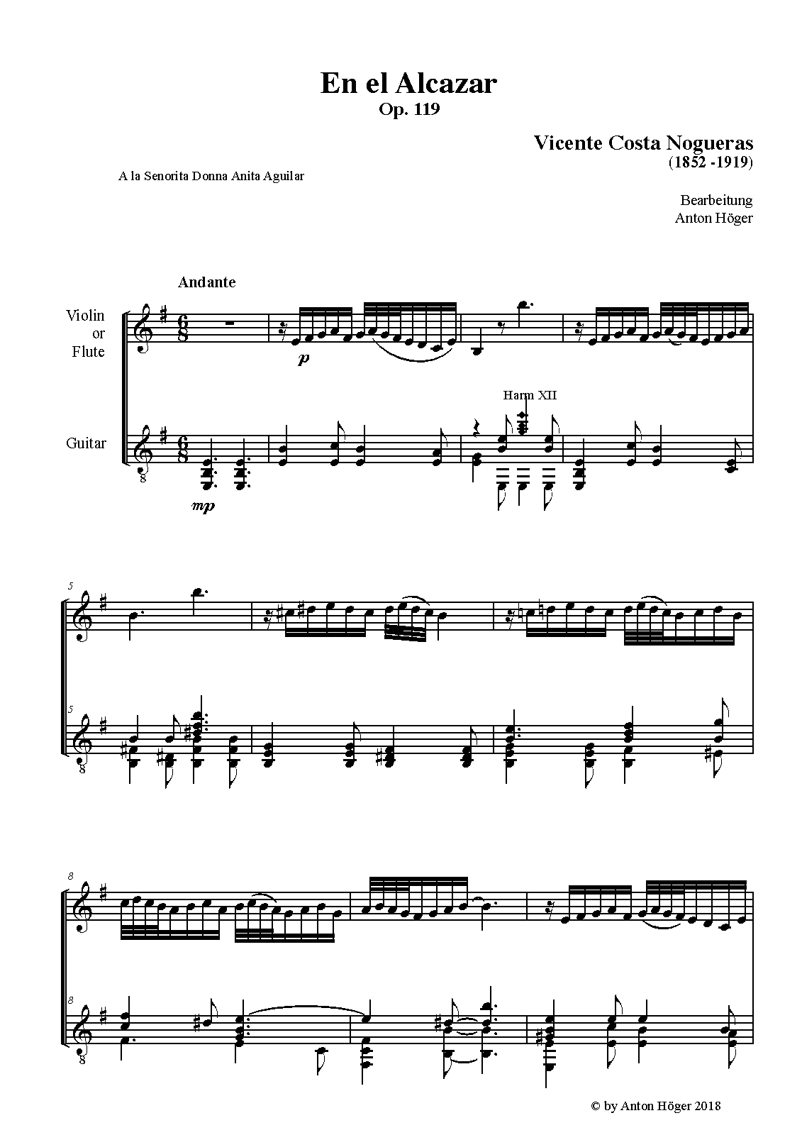 For Violin or Flute and Guitar. If performed I would look forward about a small reference to my efforts.