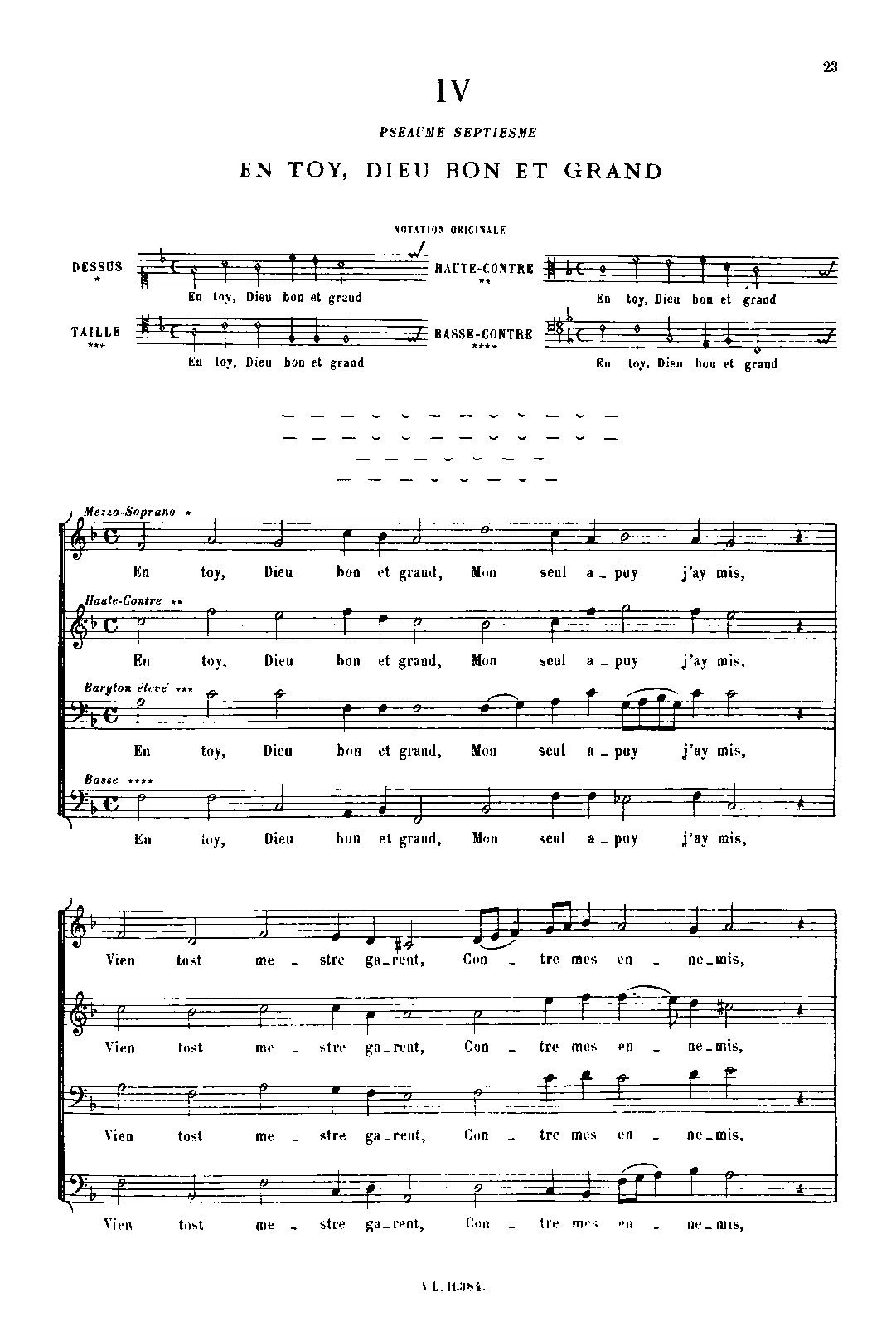 | Genre Categories | Psalms; Religious works; For 4 voices; |