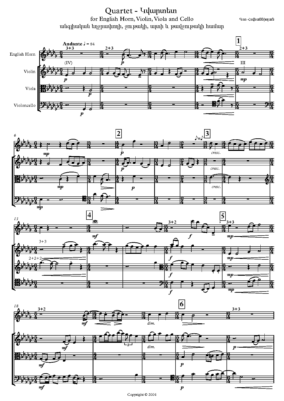 | Genre Categories | Quartets; For English horn, violin, viola, cello; Scores featuring the English horn; |