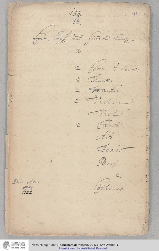 | Instrumentation | SSATB, 2 recorders, 2 oboes, bassoon, 2 horns, strings, continuo |