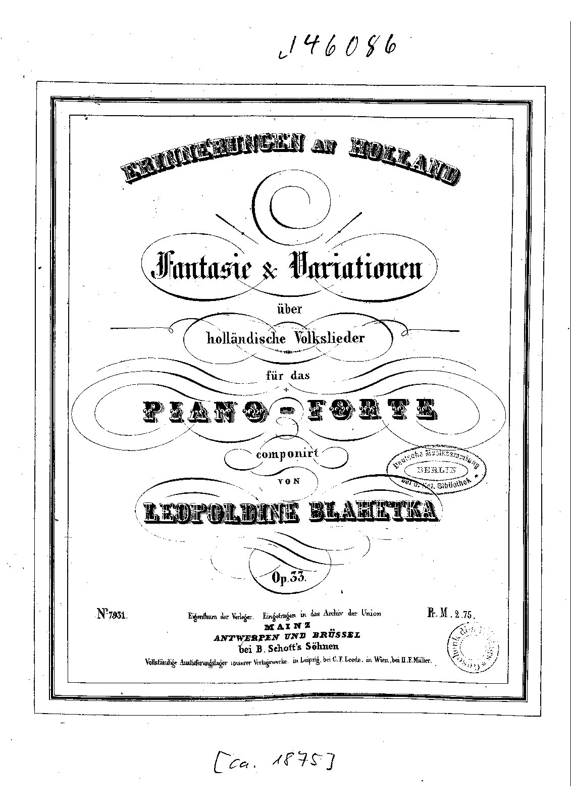 | Alternative. Title | Fantasie & Variationen über holländische Volkslieder für das Piano-Forte |