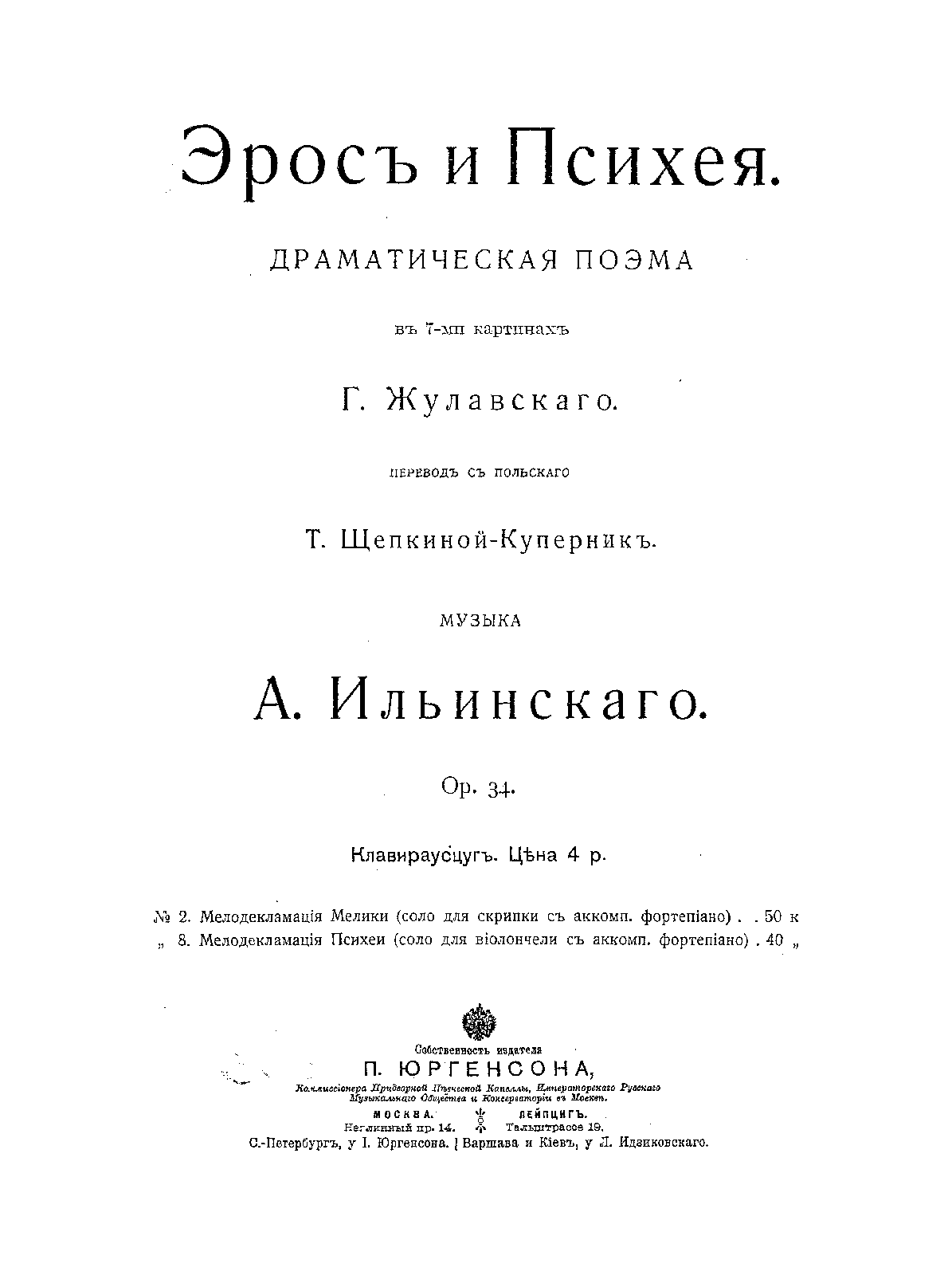| Alternative. Title | Эрос и Психея; dramatic poem in 7 scenes |