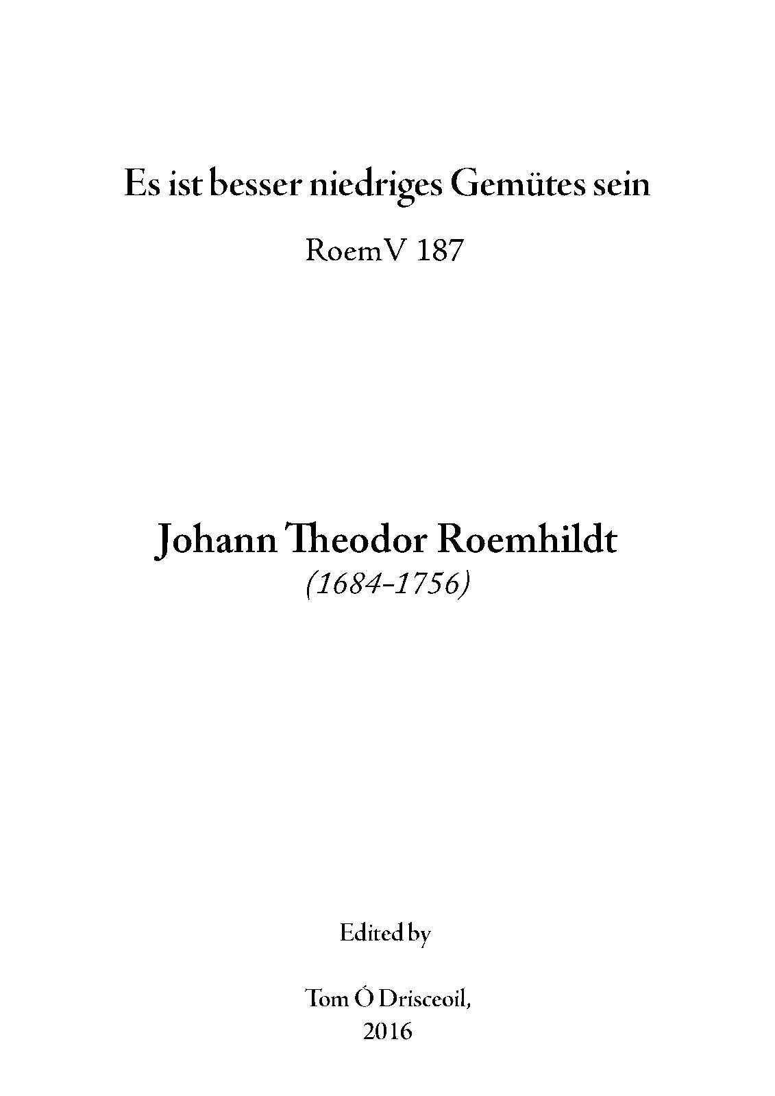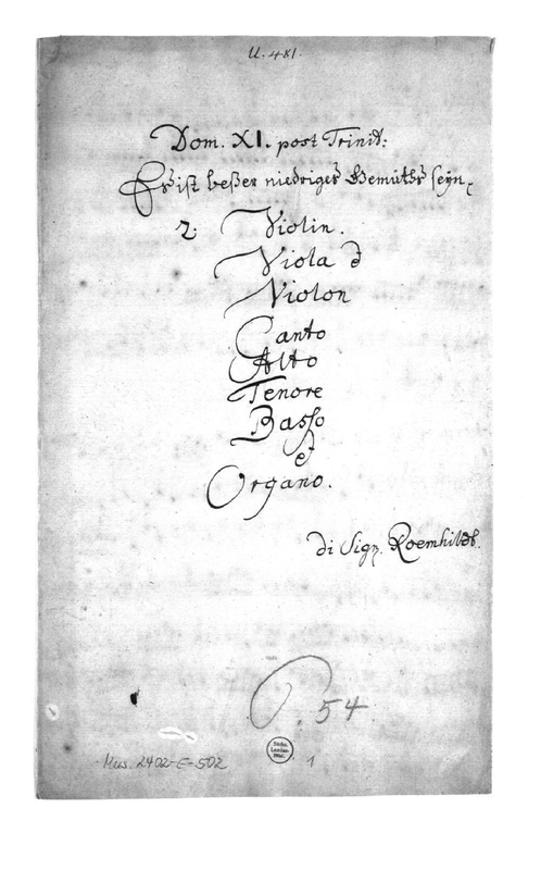 The soprano part has been reconstructed for movements 1 and 5, however reconstruction of the soprano aria is impossible due to the missing text. The source gives "niedriges", rather than the correct (in modern German) "niedrigen", and this has been retained.