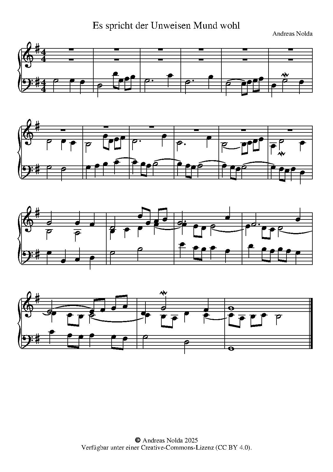 | Work Title | Es spricht der Unweisen Mund wohl |
