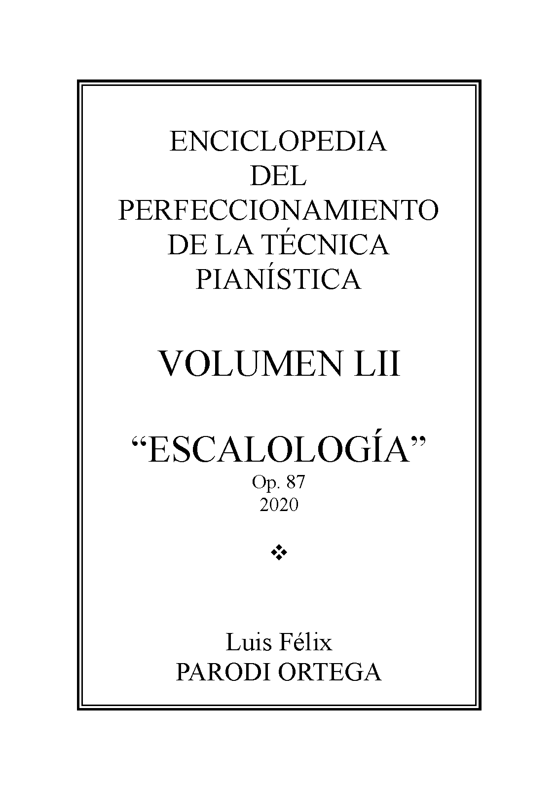 | Extra Information | ESCALOLOGÍA OP. 87 ES EL VOLUMEN LII DE MI "ENCICLOPEDIA DEL PERFECCIONAMIENTO DE LA TÉCNICA PIANÍSTICA".