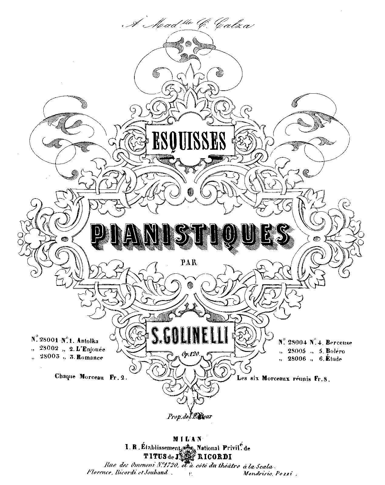 Milan: Ricordi, n.d.[1857]. Plate 28001–28006.