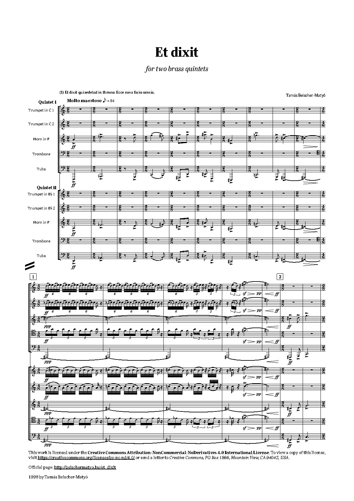 | Instrumentation | 2 brass quintets, each with 2 trumpets (C or B♭), horn (F), trombone, tuba |