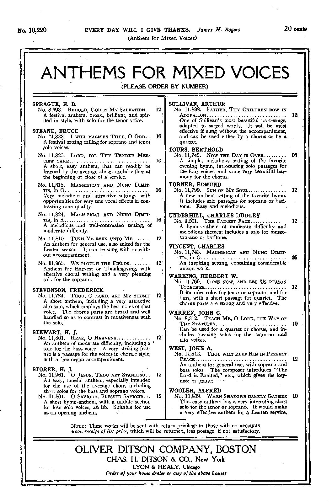 | Genre Categories | Anthems; Religious works; For mixed chorus, organ; |