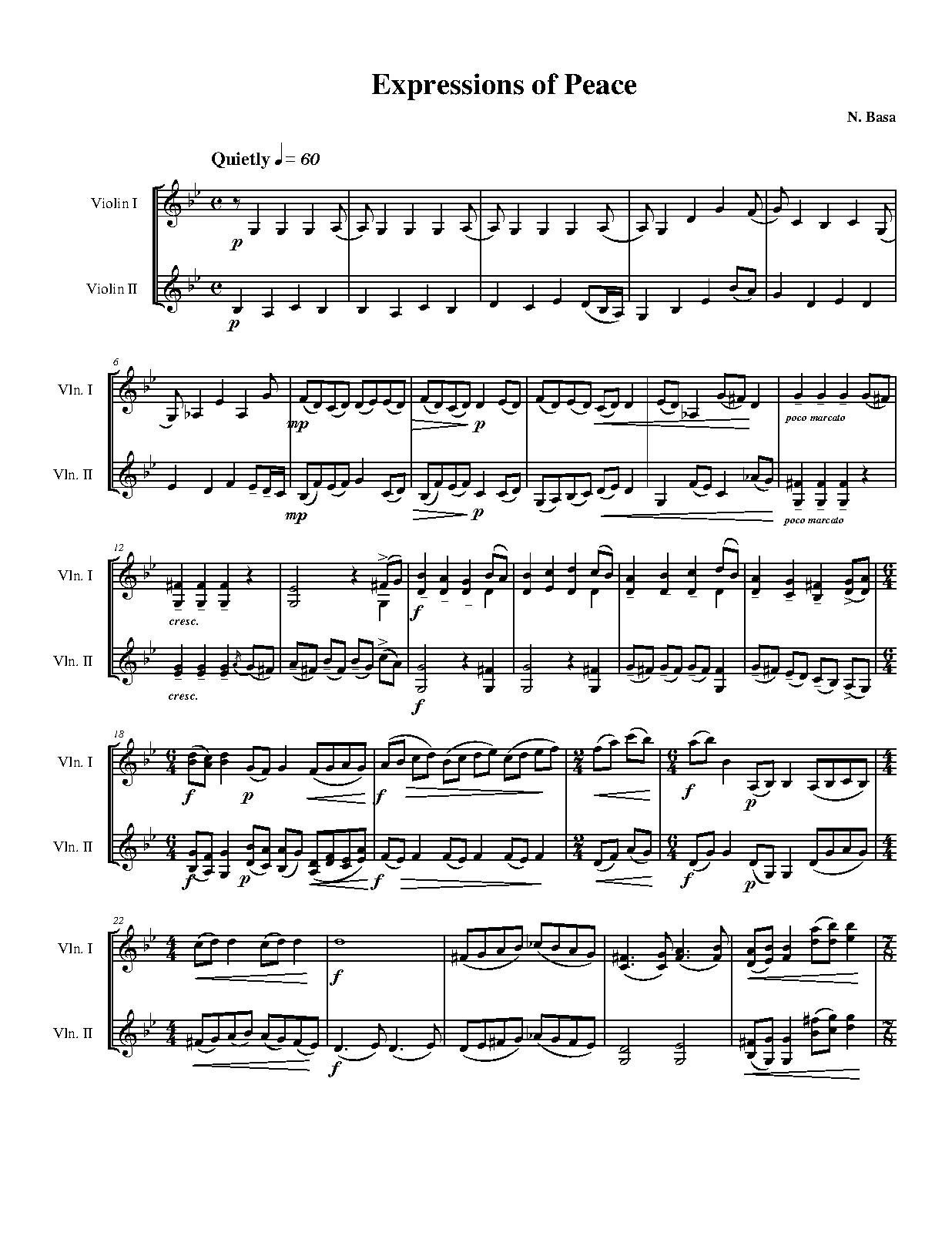 Piece for two violins, contemporary but tonal. If you find you like the piece well enough to perform it, it would be great to hear from you. I would be happy to give you any extra details about the work if you like. If you record it, by all means send on a copy if you can! Best wishes, hope you enjoy.