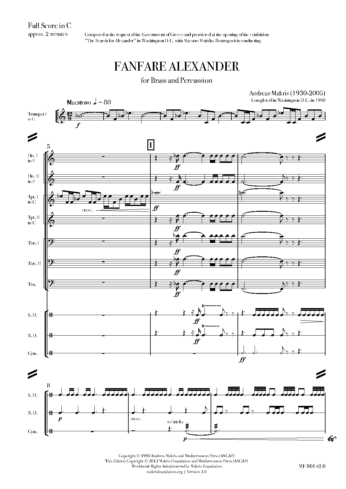 | Alternative. Title | Fanfare Alexander for Brass and Percussion |