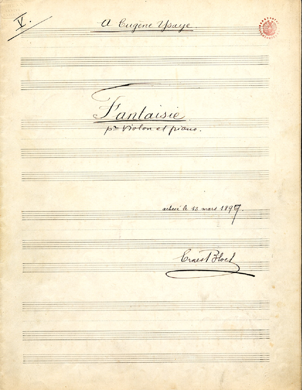 There's also a Fantaisie-Lied for violin and piano from 1898 in the Strassbourg Collection. A Folkways LP had a "1899"-composed Fantasia by Bloch (this work? the other? another?) for violin and piano played by Hyman Bress.