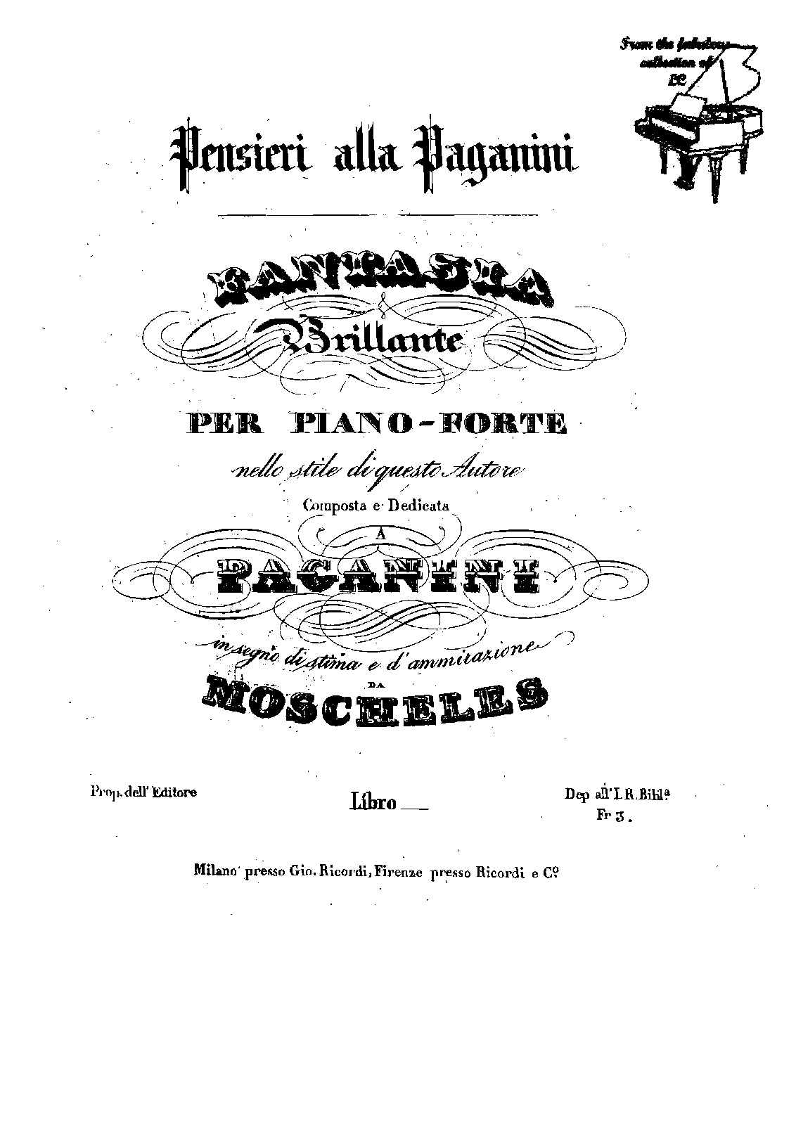 | Alternative. Title | Fantaisie à la Paganini arr. d’après plusieurs Motifs, Passages etc. exécutés par lui dans ses Concerts, p. Pfte. |