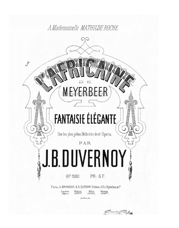 L'Africaine de Meyerbeer. Fantaisie élégante sur les plus jolies mélodies de cet opéra.