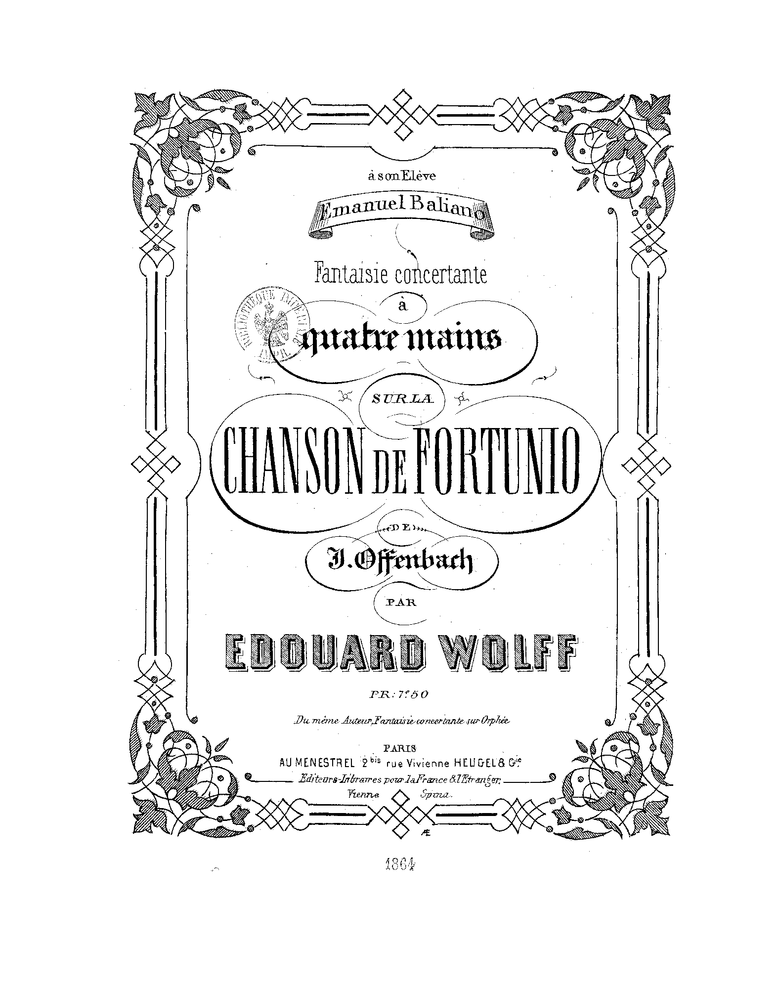 Chanson de Fortunio de J. Offenbach. Fantaisie concertante à quatre mains