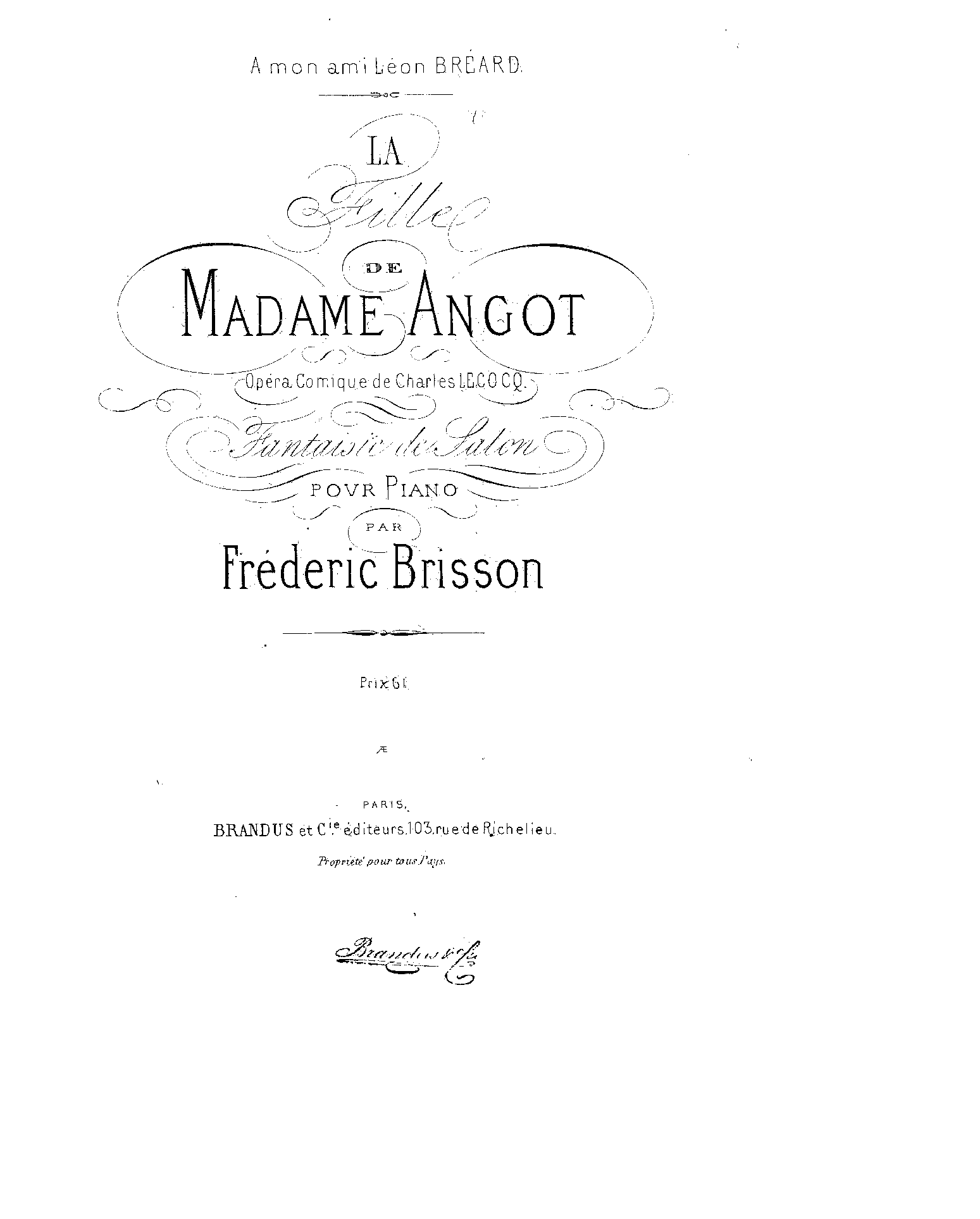 | Alternative. Title | La fille de Madame Angot. Opéra-comique de Charles Lecocq. Fantaisie de salon. |