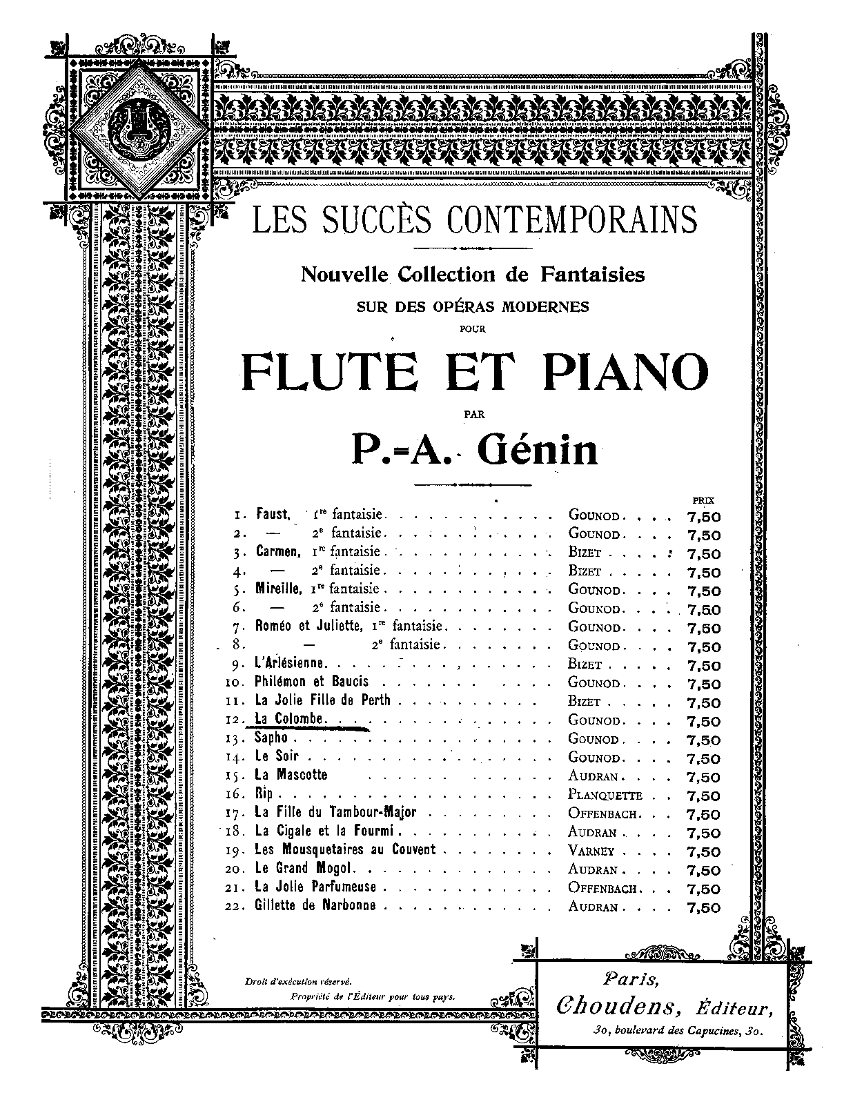 | Genre Categories | Fantasias; For flute, piano; Scores featuring the flute; |