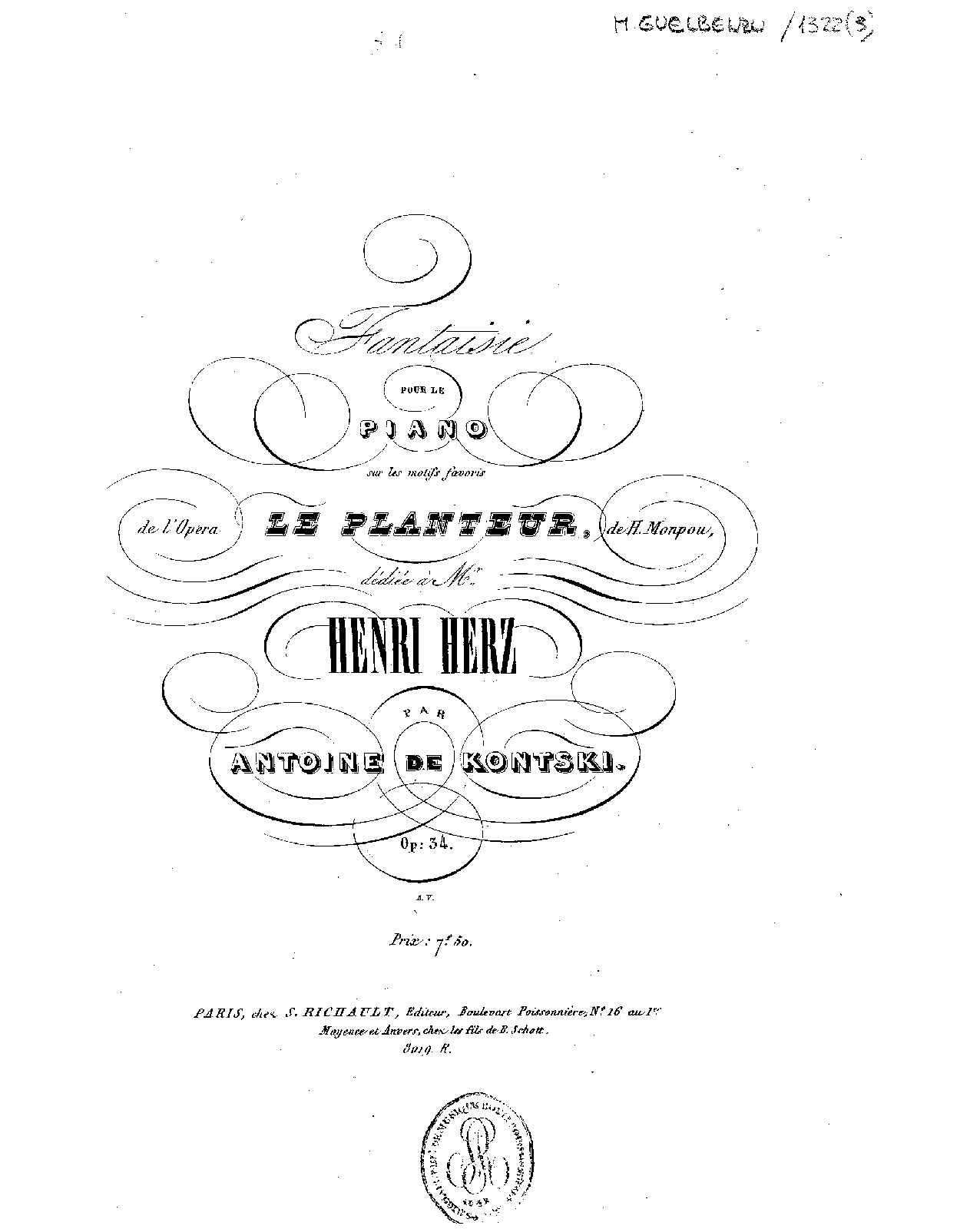 Fantaisie pour le piano sur des motifs favoris de l'opéra Le planteur, de Monpou