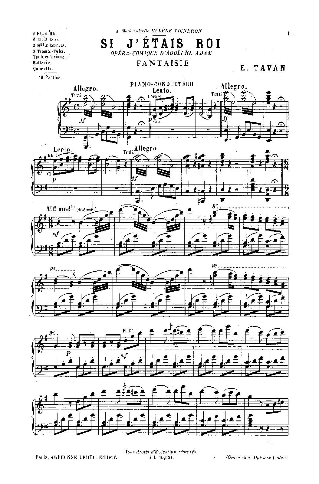 Si j'étais roi. Opéra-comique d'Adolphe Adam. Fantaisie.