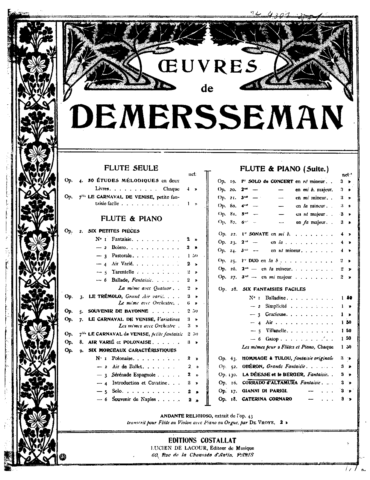 Paris: Editions Costallat, n.d.