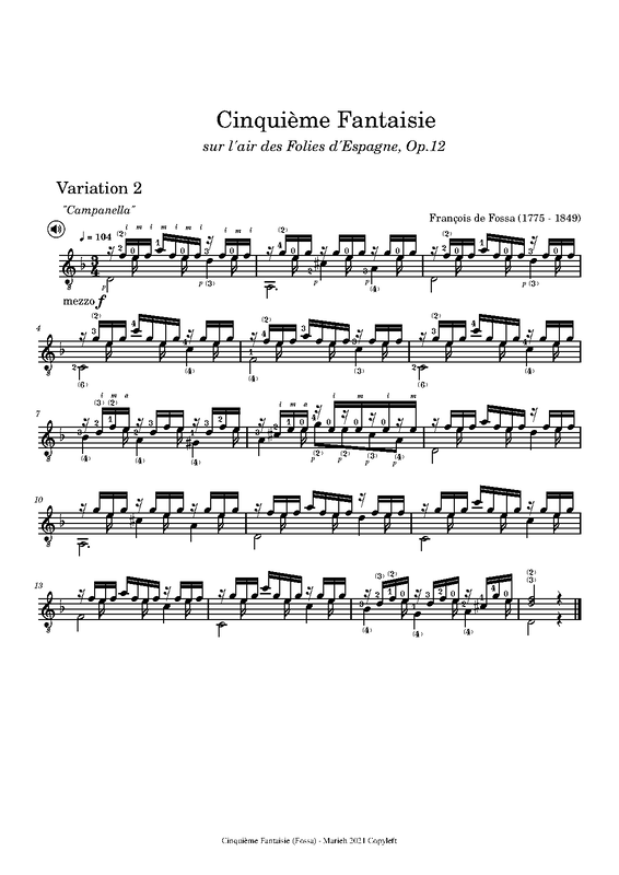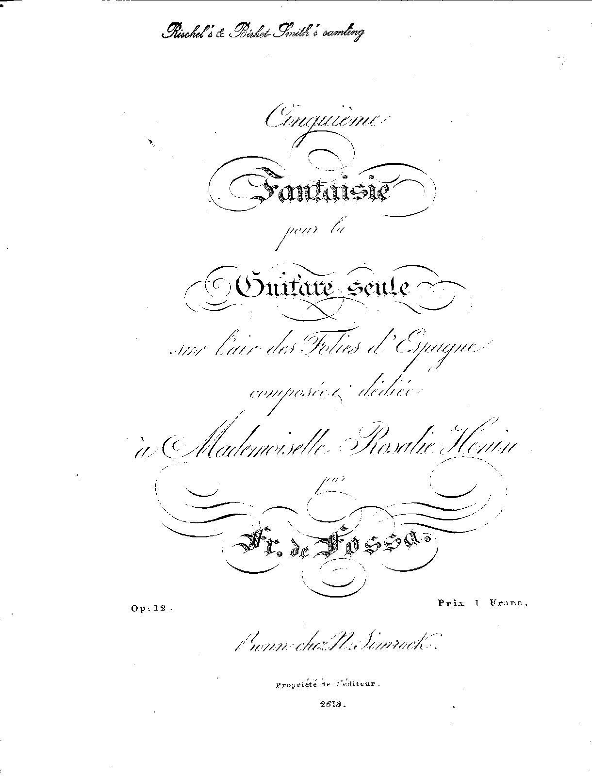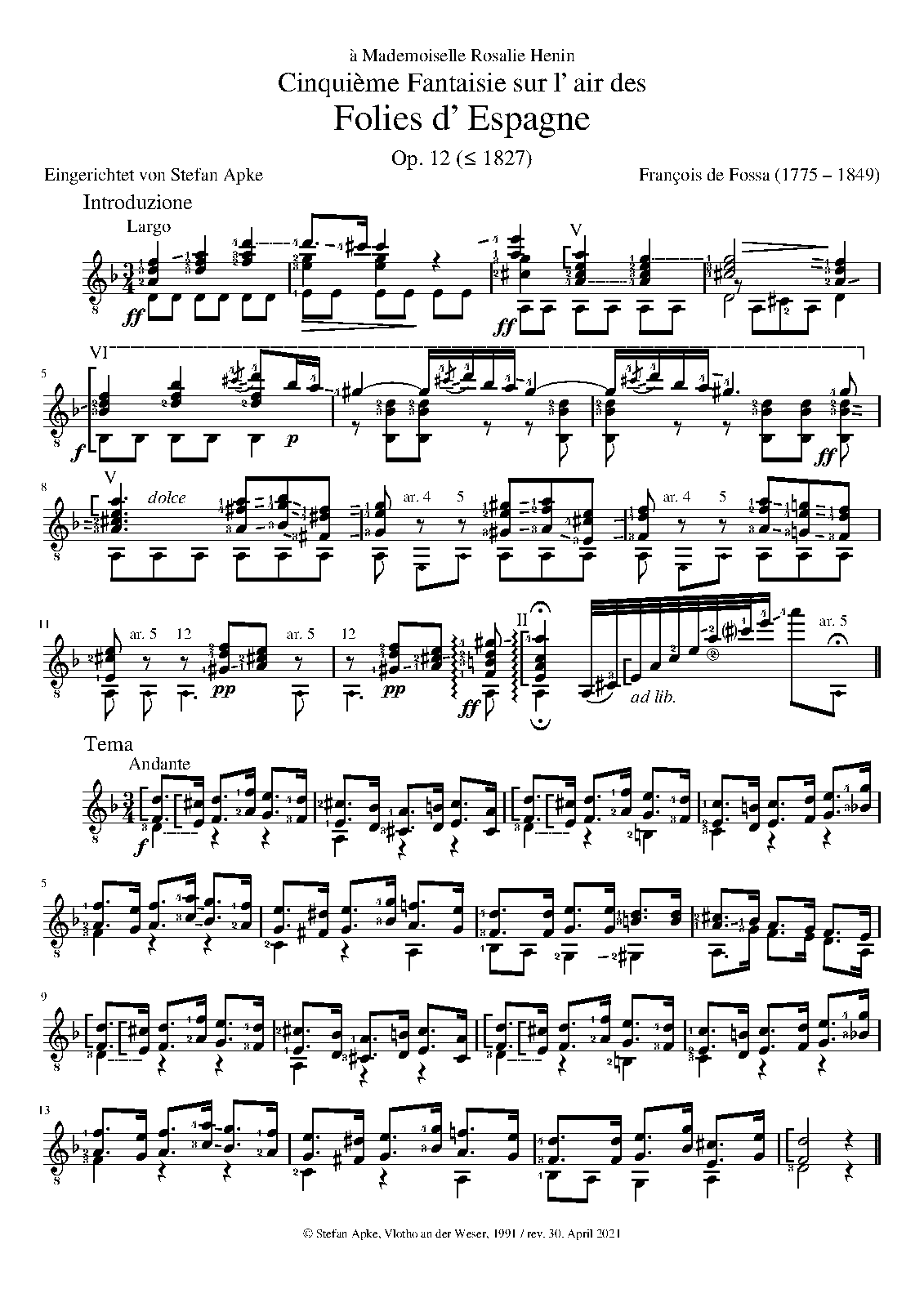 | Alternative. Title | 5. Fantaisie pour la guitare seule sur l'air des Folies d'Espagne |