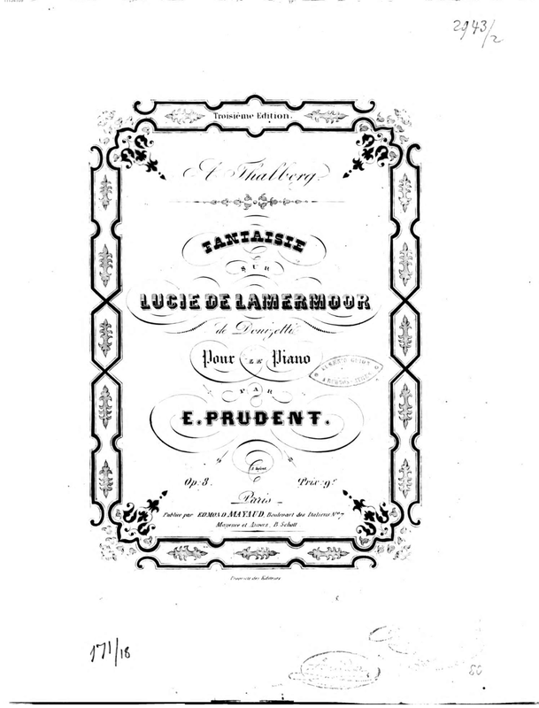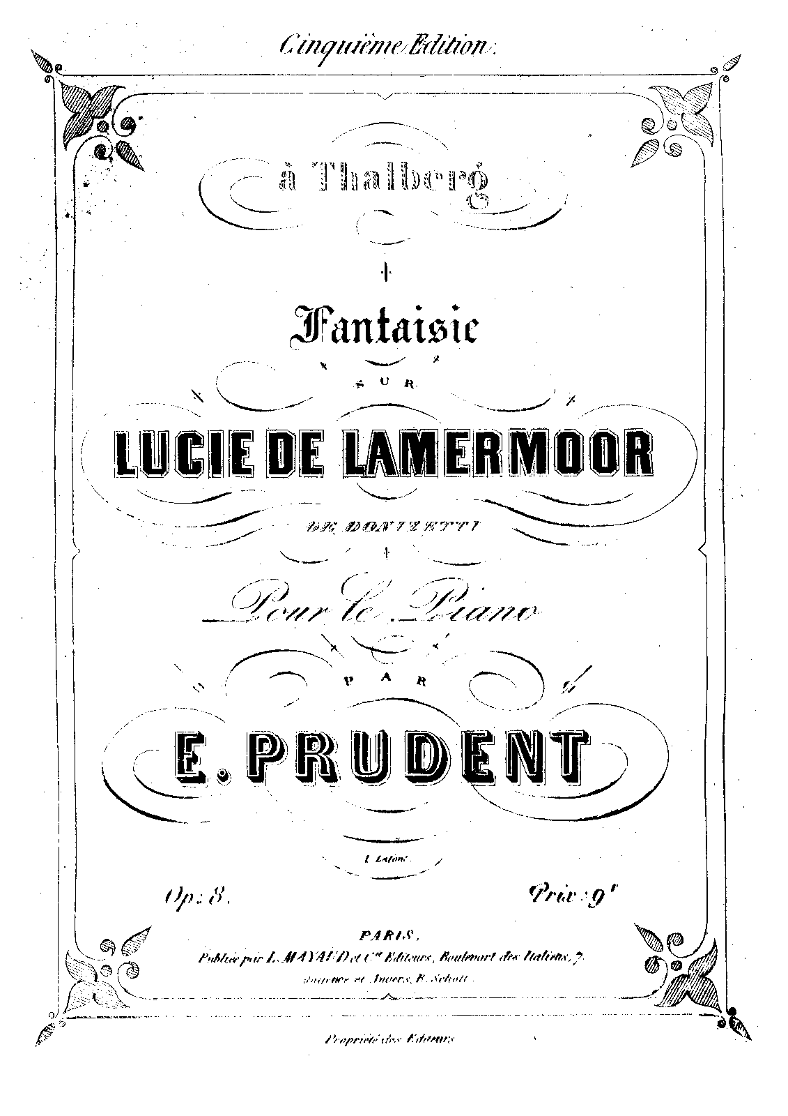 One of his more popular early works; republished e.g. by Giovanni Canti of Firenze (and Milan, but only Firenze is listed here) in 1864. (Not the only work by Prudent to also be published in Italy; a browse of SBN.IT reveals a Ricordi publication of the Folie Op.56 and the 3 Rêves Op.67, for example- and dozens of other works.) Also republished by Romero in Spain, by Cocks and by d'Almaine in Britain, and according to Worldcat, this (or another work of the same name, if there is one, by Prudent?) recorded by Aeolian around 1920, and Victoria @ La Garriga around between 1905 & 1929 (both as piano rolls?). A more modern performance is available on YouTube.