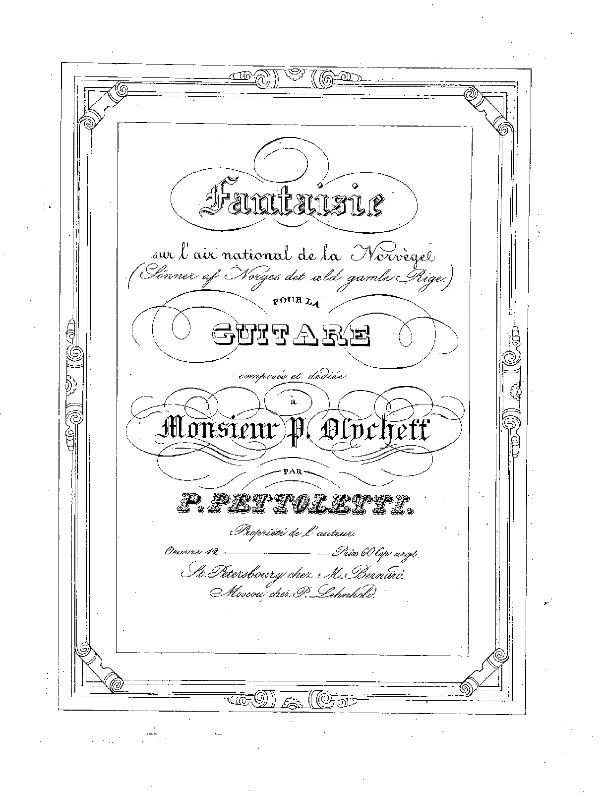| Work Title | Fantaisie sur l'Air national de la Norvège "Sönner af Norges det æld gamle Rige" pour la Guitare |