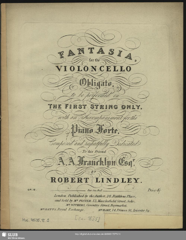 | Alternative. Title | Fantasia, for the Violoncello Obligato, to be performed on the first string only, with an accompaniment for the piano forte |