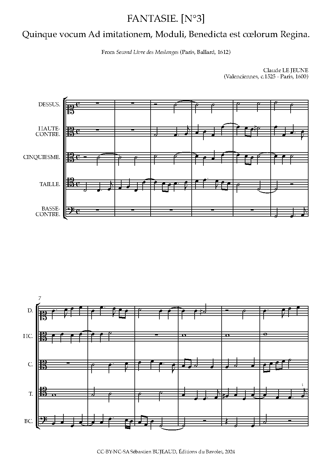 ⇒ 8 more: Complete (modern clefs) • Dessus (original clefs) • Dessus, modern key • Haute-contre • Cinquiesme • Taille (original clefs) • Taille (original clefs) • Basse-contre