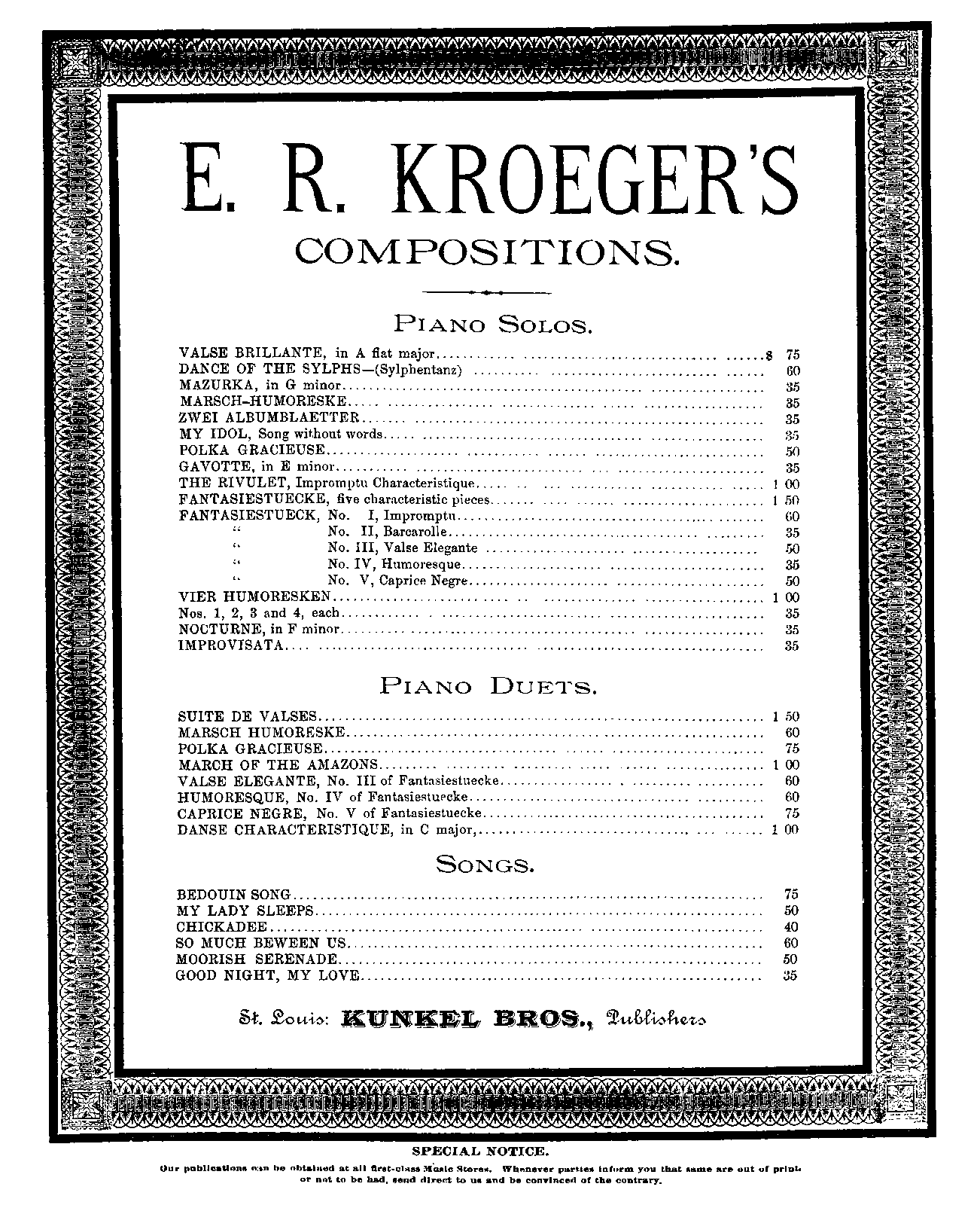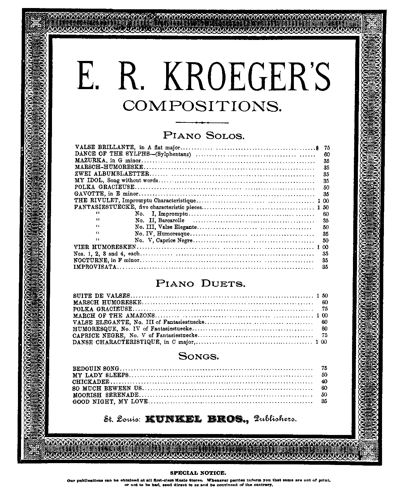 | First Publication. | 1885 – St. Louis: Kunkel Brothers |