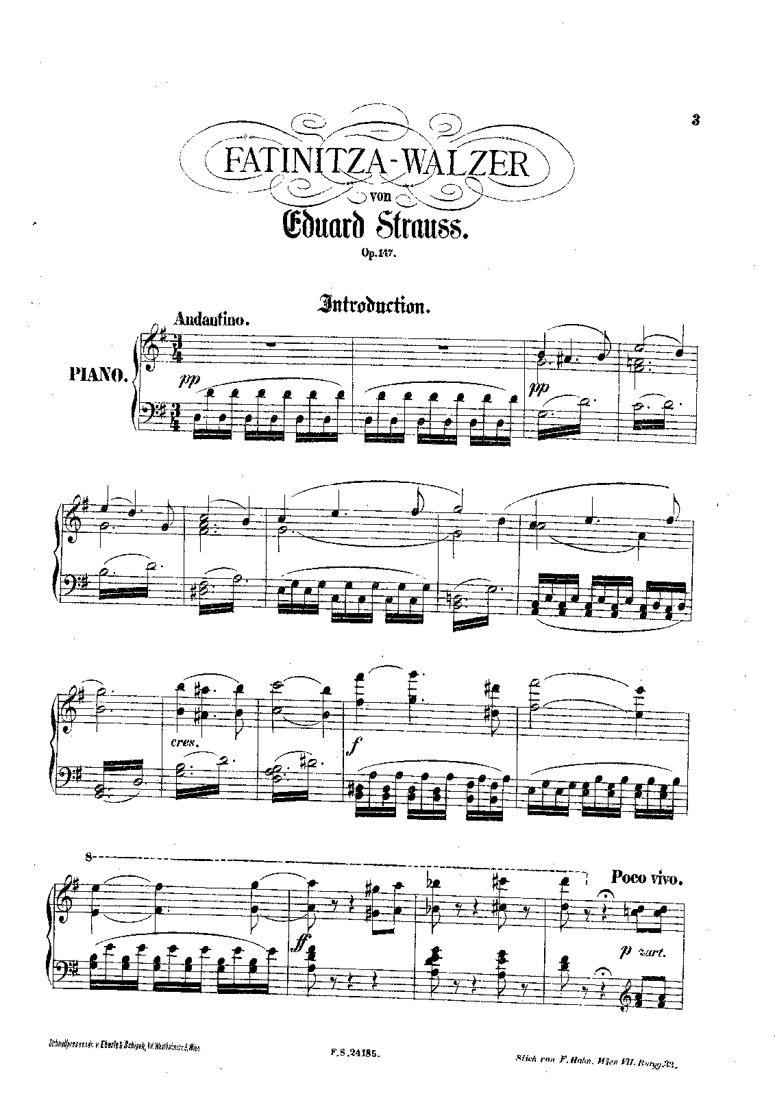 | Alternative. Title | Fatinitza, waltzes on melodies from the opera by F. v. Suppé |