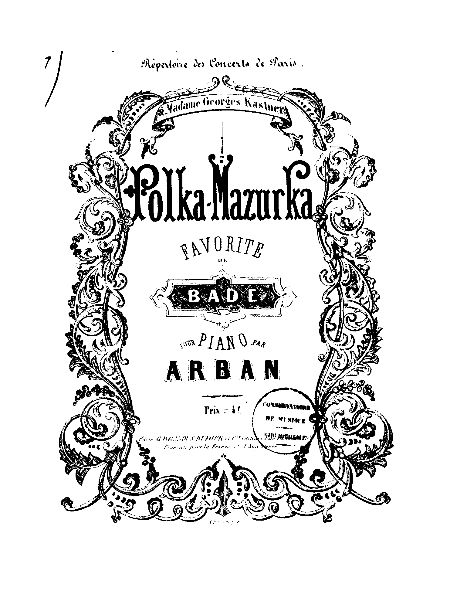 | Dedication | à Madame Georges Kastner |
