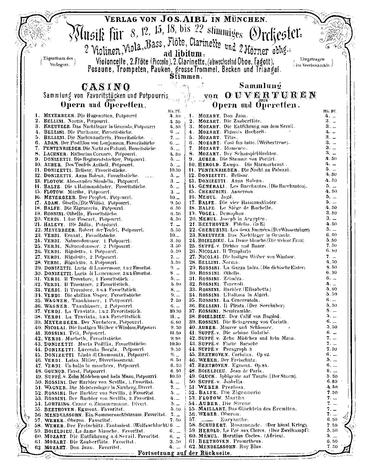 | Work Title | Favoritstücke aus der Oper 'Die Zauberflöte' |
