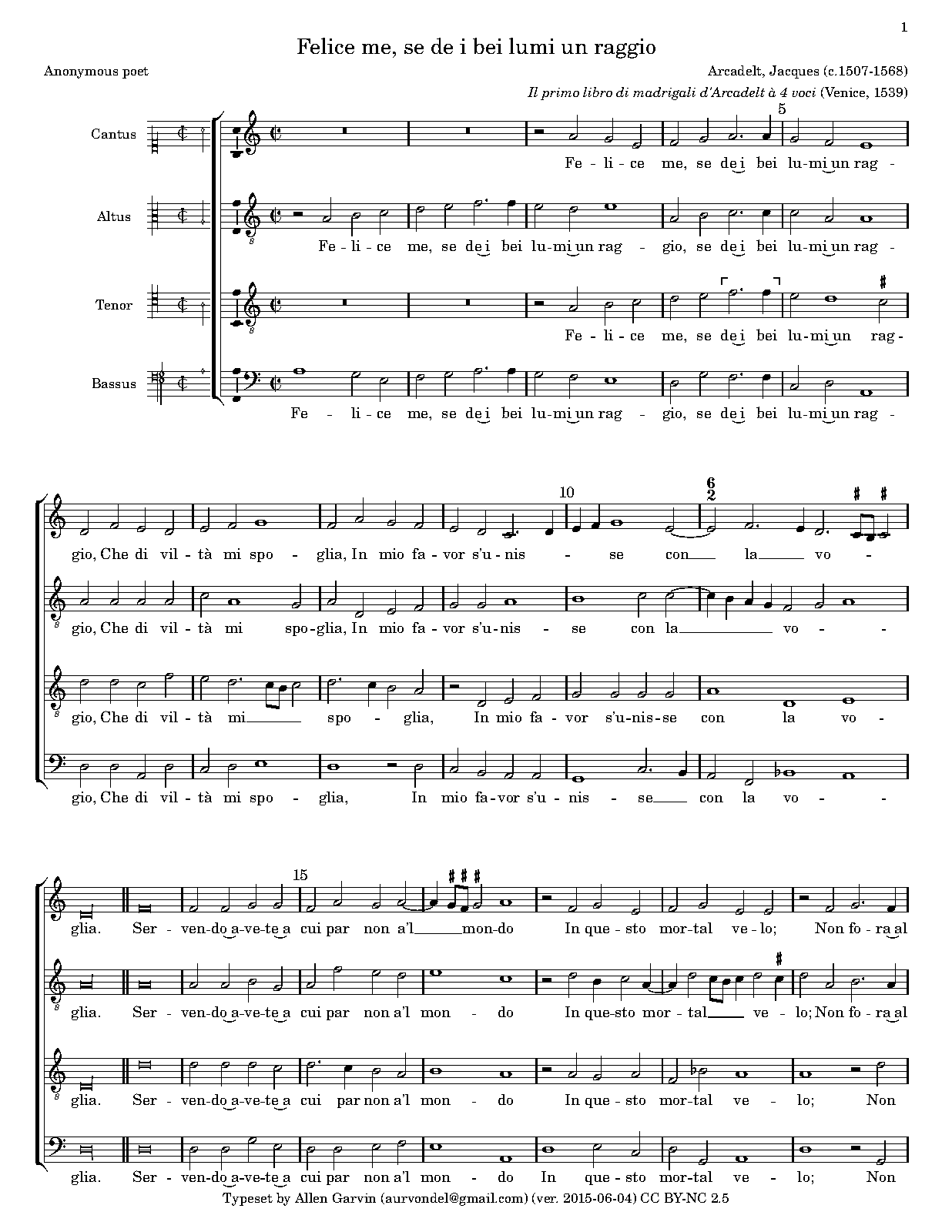 Felice me, se de i bei lumi un raggio (Arcadelt, Jacob)