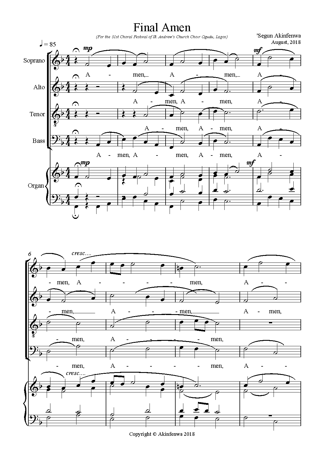 | Dedication | St. Andrew's Church Choir, Ogudu, Lagos |
