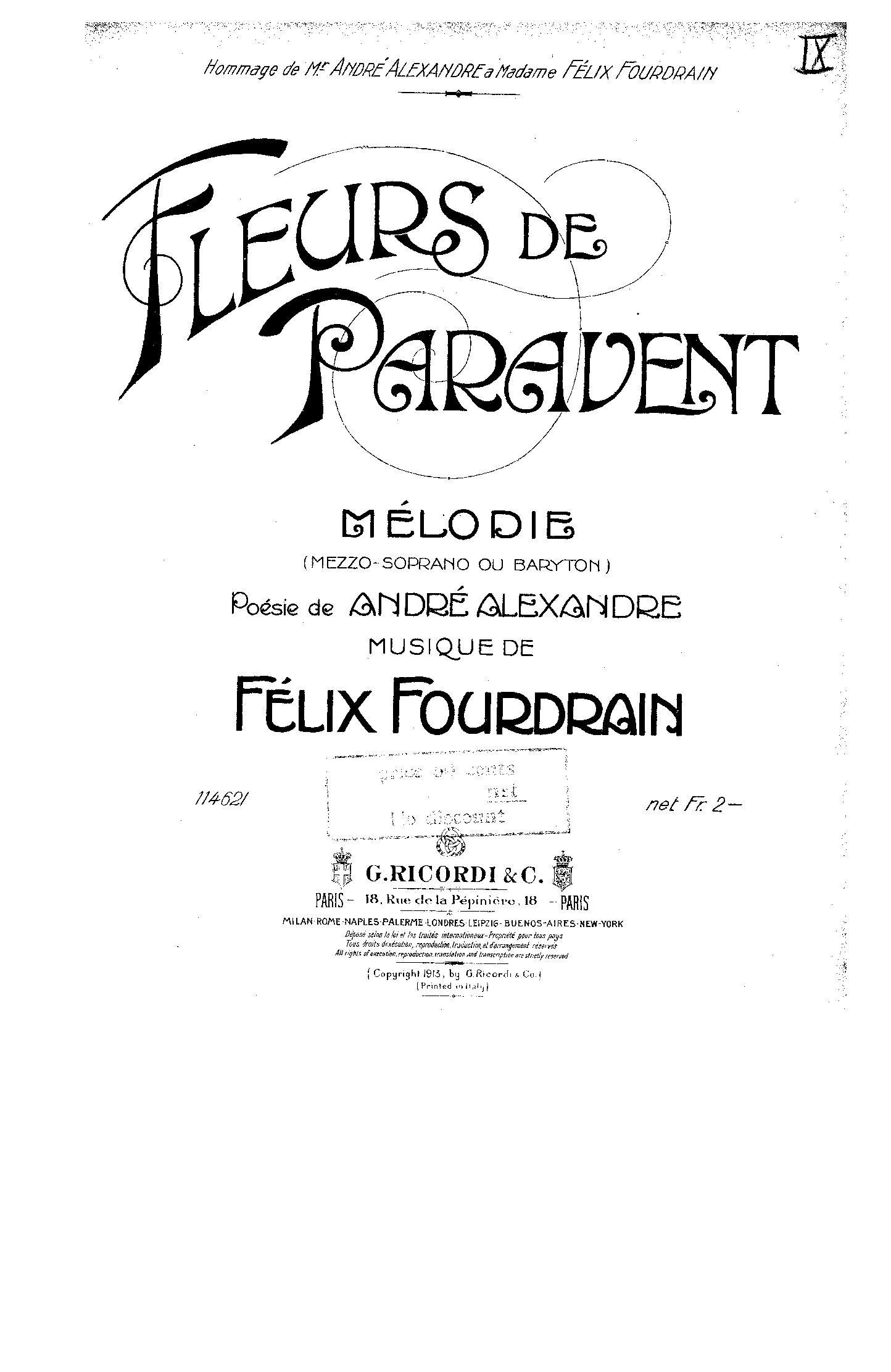 | Dedication | Hommage de Mr. André Alexandre à Madame Félix Fourdrain |