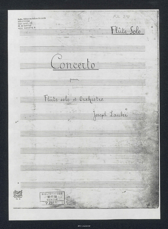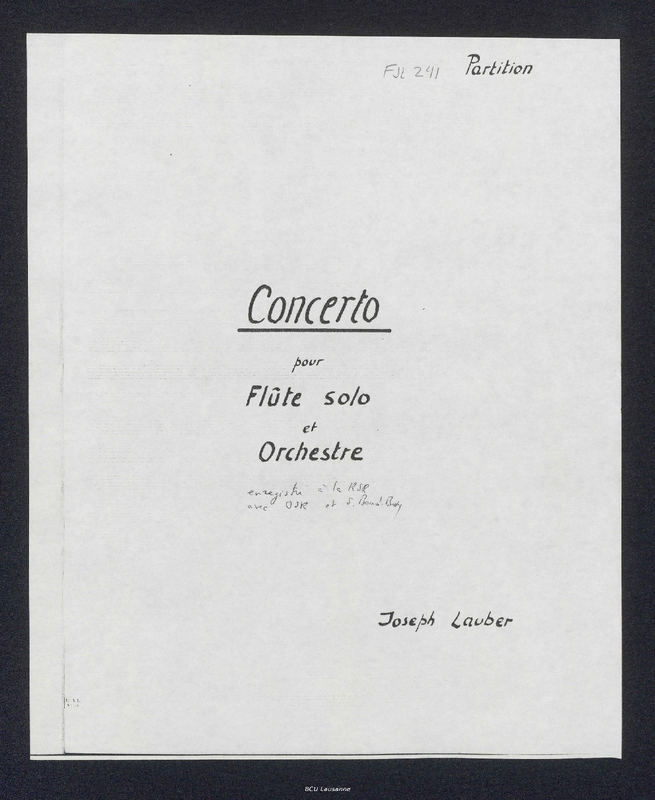| Manuscript Sources | Bibliothèque cantonale et universitaire, Lausanne (CH-LAcu): Fonds Joseph Lauber, FJL 241 |