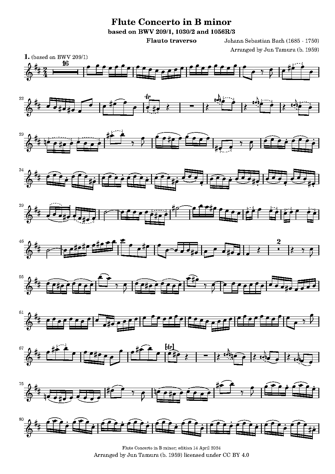 | Extra Information | A "pasticcio" flute concerto based on Bach's BWVs 209/1, 1030/2 and 1056R/3 |