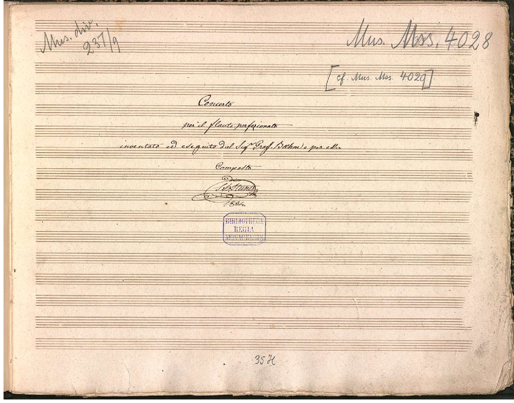 | Alternative. Title | Concerto per il flauto perfezionato inventato ed eseguito dal Sigr. Prof Boehm e per esta composta di JH Stuntz 1834 |