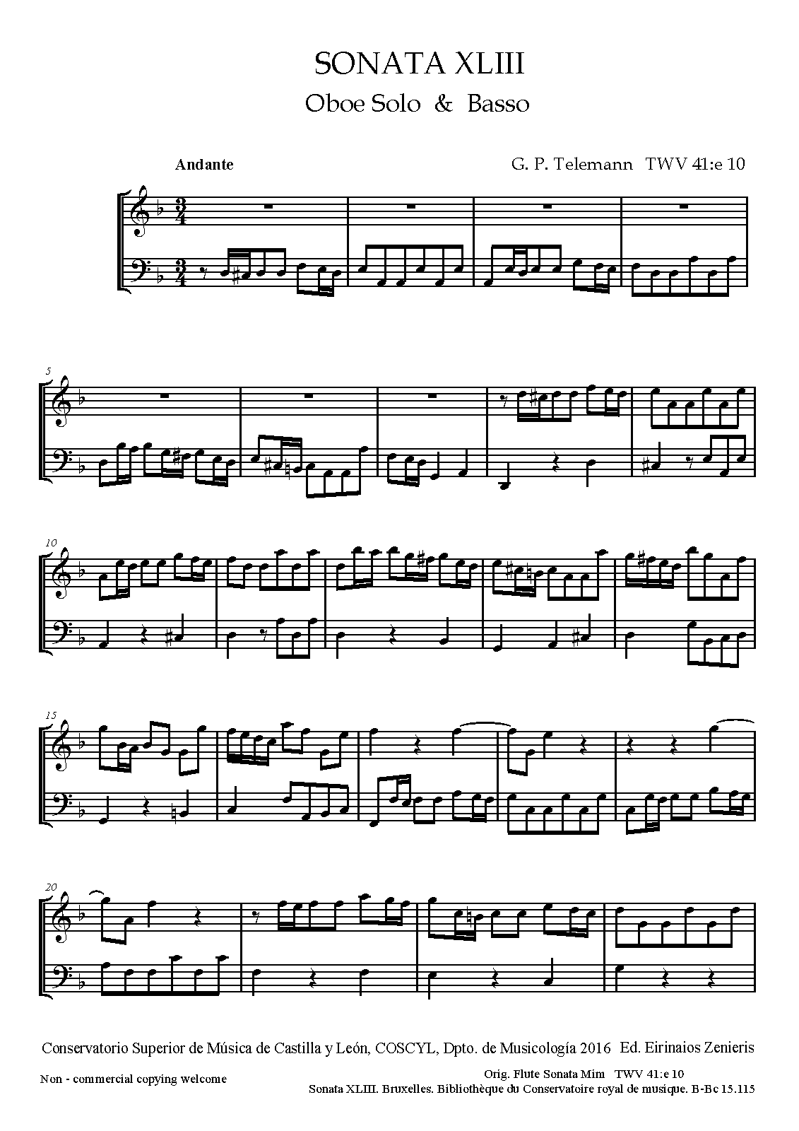 | Alternative. Title | Sonate XLIII Flauto Traversa solo et Basso |