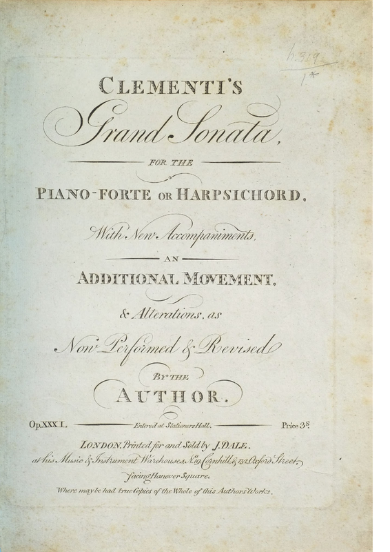 Alternative. Title Clementi's Grand Sonata, for the Piano-Forte or Harpsichord, with new accompaniments, an additional movement, & alterations, as now performed & revised by the author