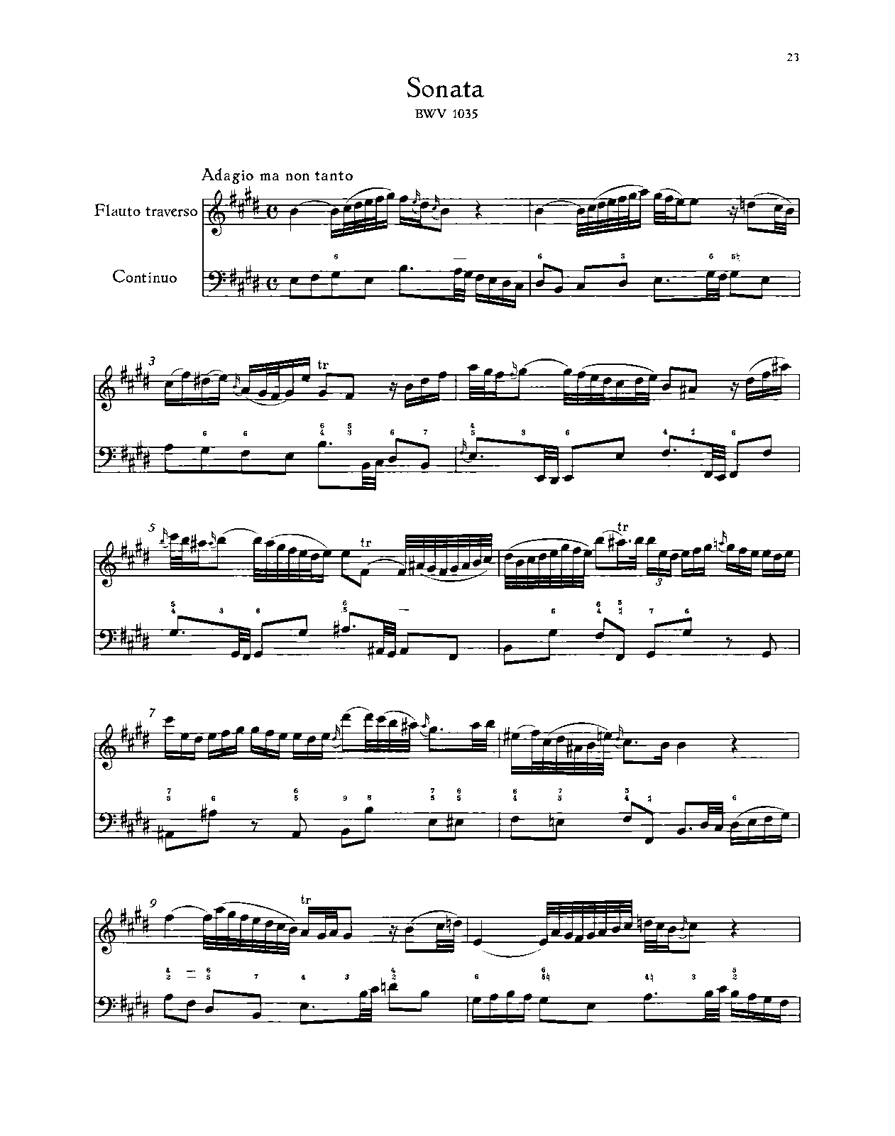Name Aliases Sonate en mi majeur BWV 1035; Sonata for Flute and Continuo in E Major, BWV 1035; Bach, Johann Sebastian, 1685-1750. Sonata, flute & continuo, S. 1035, E major; Bach, Johann Sebastian, 1685-1750. Sonatas, flute, guitar, BWV 1035, E major