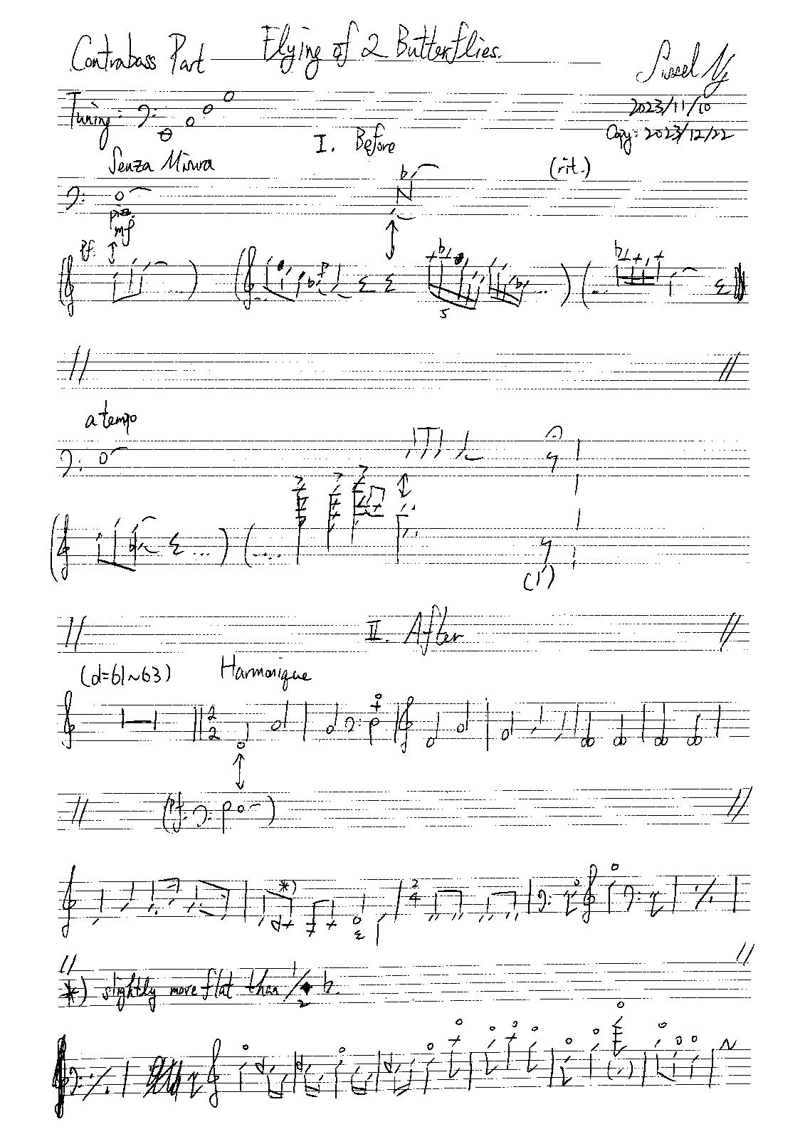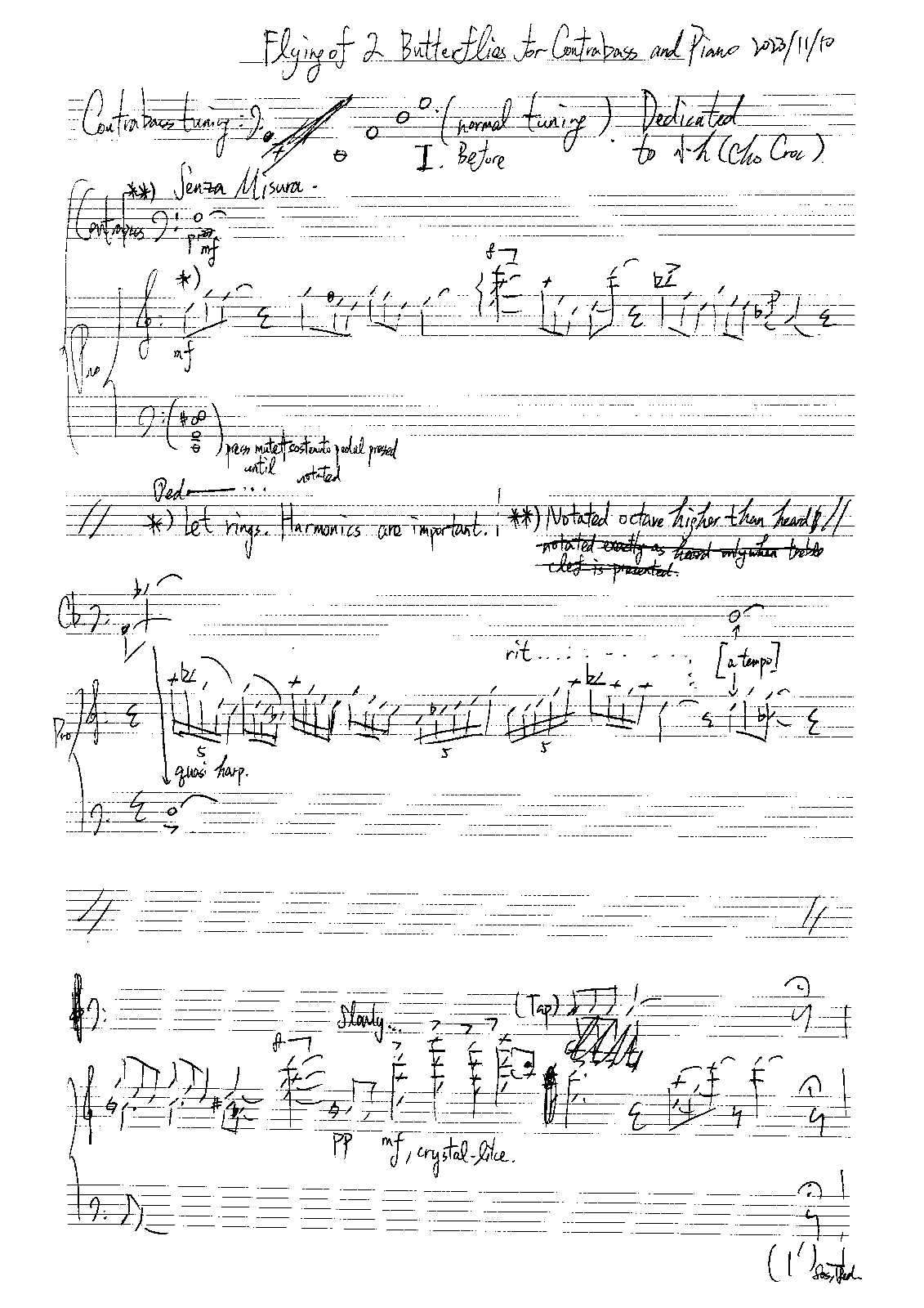 Based on a Cantonese folk song that inspired the Cantonese opera "雙飛蝴蝶" (Translation: 2 Butterflies flying [together]). competition piece, maybe premiered in 2024? 2 movements presents 2 status of 2 butterflies: Before as they met, tried to communicate; After as they sung/fly together, then left. -Sissel