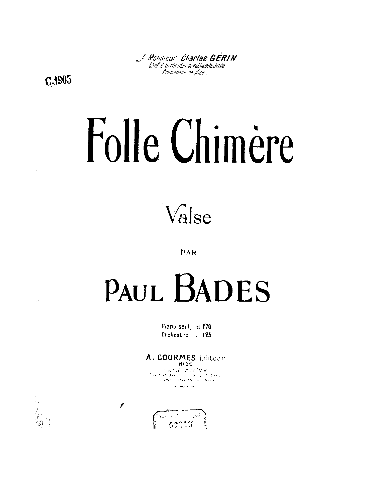 | First Publication. | 1905 — Nice: A. Courmes |