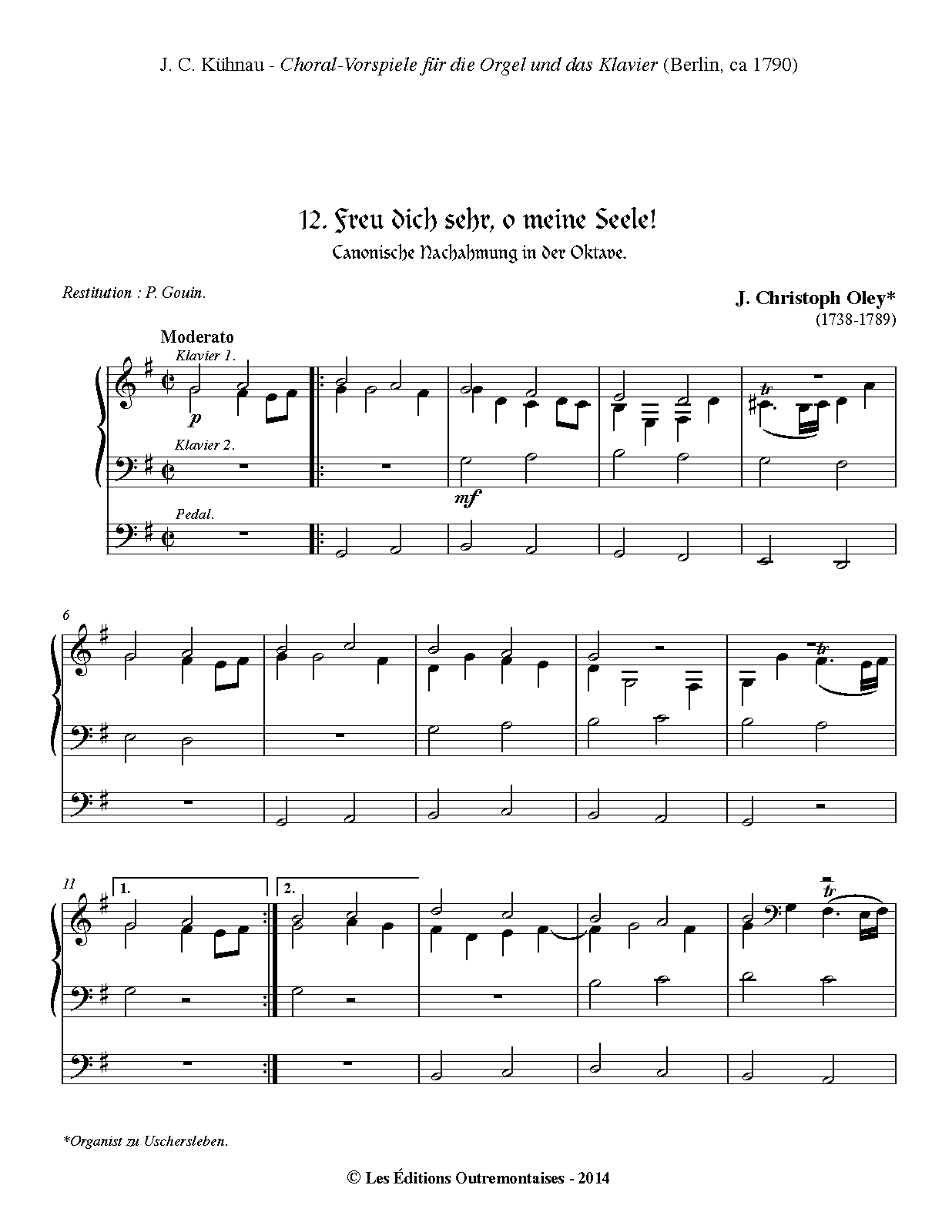 One of at least two organ "settings" of Freu dich made by Oley; see D-B Mus.ms. 11419 (67) for the incipit of another, in E minor?