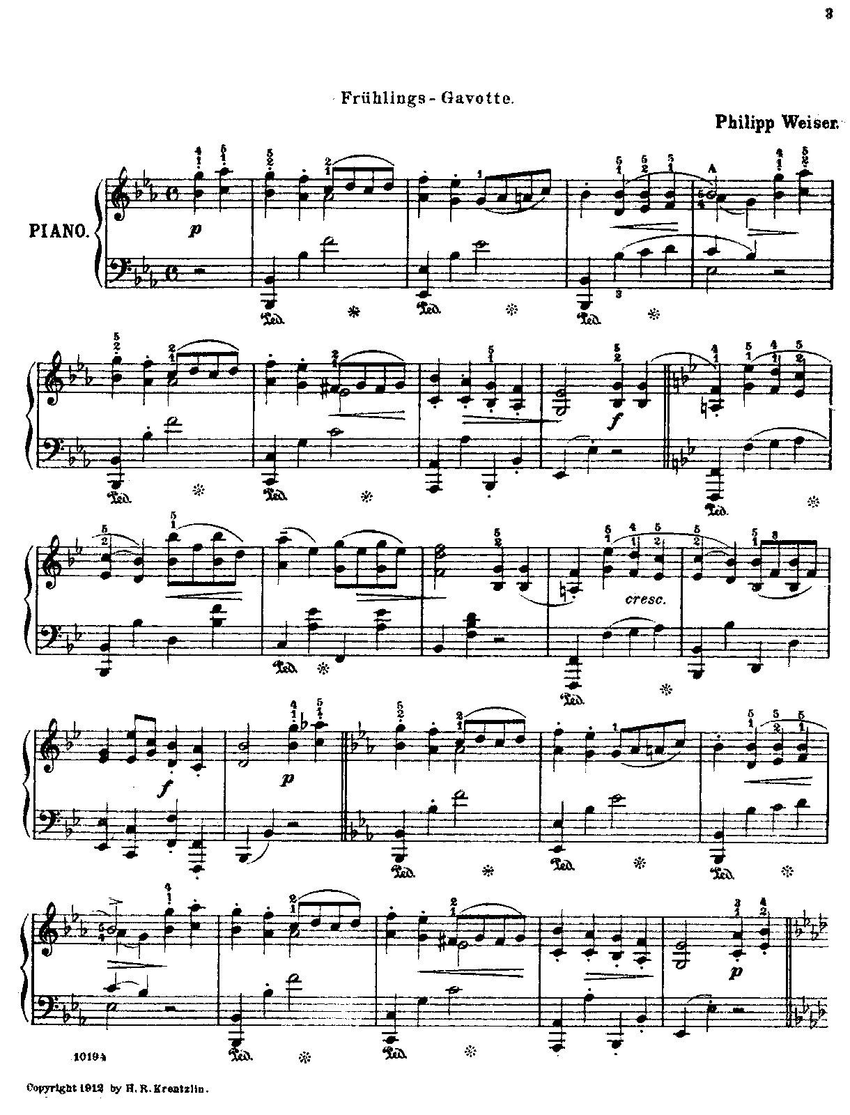 Boston: Arthur P. Schmidt, 1912. Plate A.P.S. 10194. Copyright Claimant - H.R. Krentzlin