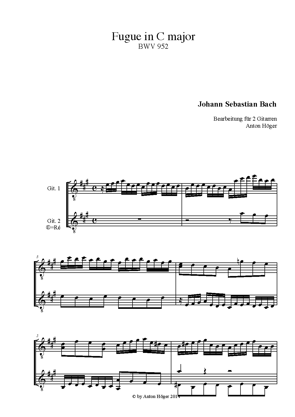 Opus/Catalogue NumberOp./Cat. No. BWV 952 ; BC L 150