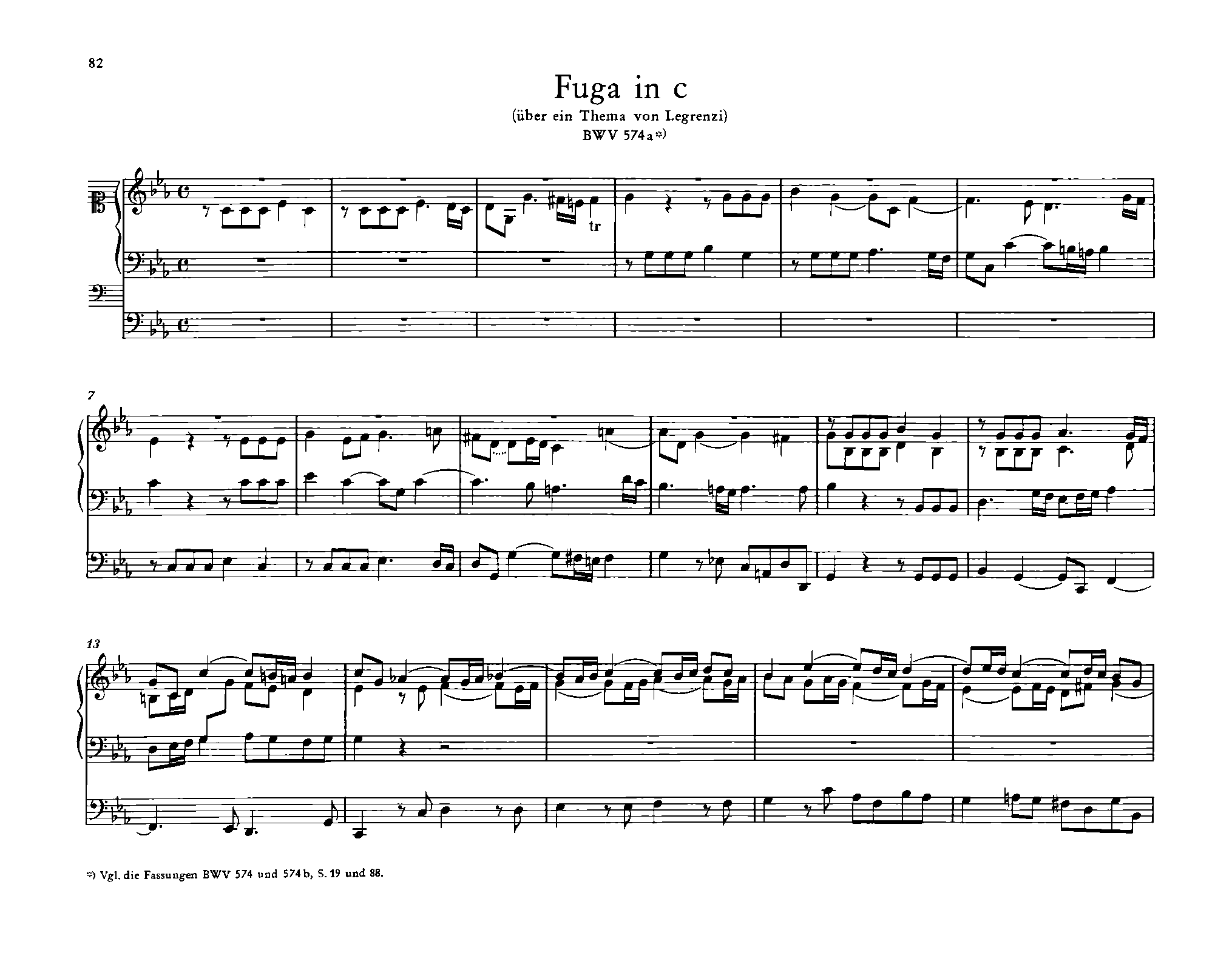 Extra Information This is an extensive abridged (shortened) revision of BWV 574/b especially the 32nd note cadenza-like section towards the end of BWV 574/b is not included in this version. It has been given its own page because of this significant cut but also there is still differences in the music before the cadenza section from the other version.