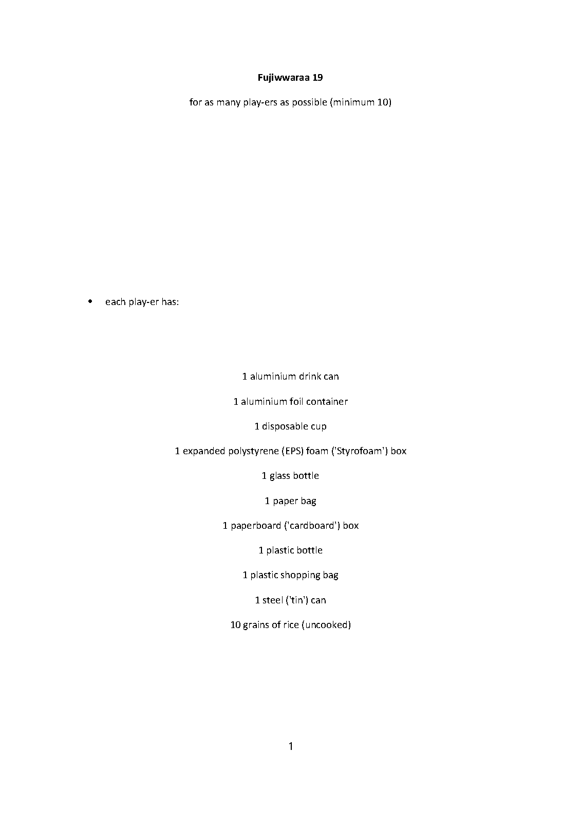 | Instrumentation | as many play-ers as possible (minimum 10), each with: